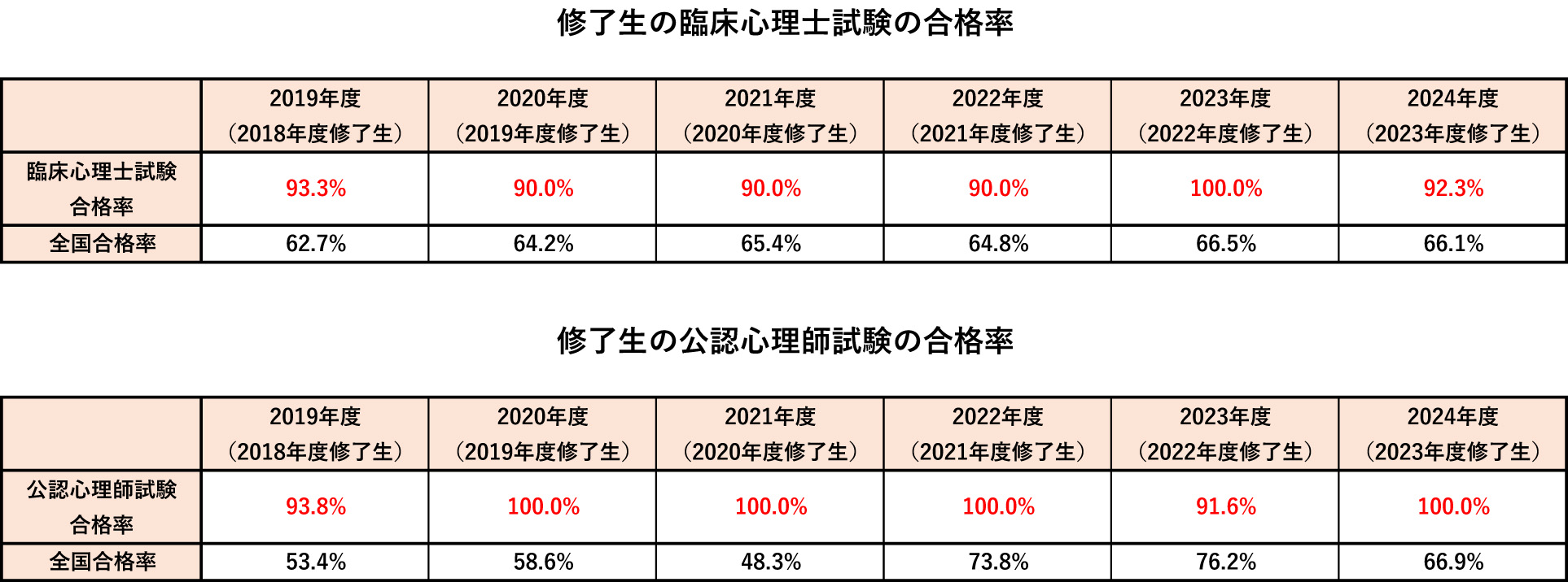 臨床心理学コースは、臨床心理士養成大学院第1種指定校であり、修了生は「臨床心理士資格試験」の受験資格を得られます。また、2018年度より国家資格である公認心理師の養成カリキュラムにも対応しています。修了生の合格率は非常に高い実績があります。
